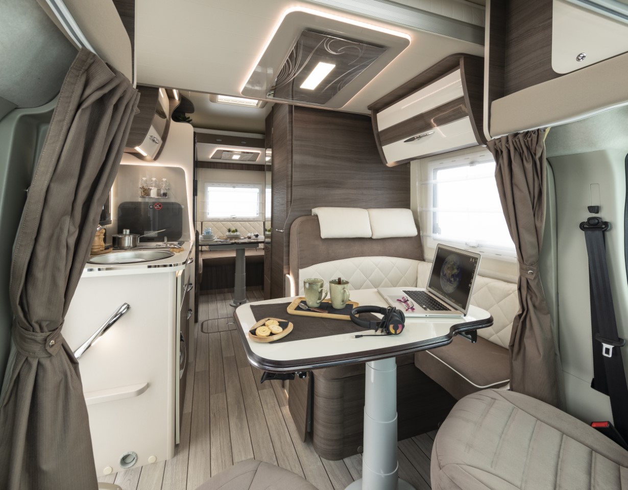 Io resto sempre convinto che la soluzione migliore sia il letto matrimoniale trasversale in coda su garage, perché occupa molto meno spazio a vantaggio di una dinette più sviluppata, che a volte persino sui motorhome non viene neppure sacrificata anteriormente dal letto basculante abbassato.